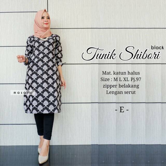 Name: Tunik Shibori Black Tunik Batik Tunik Sibori Modern Monocrome Kerja Kantor Seragam Tunic Monokrom