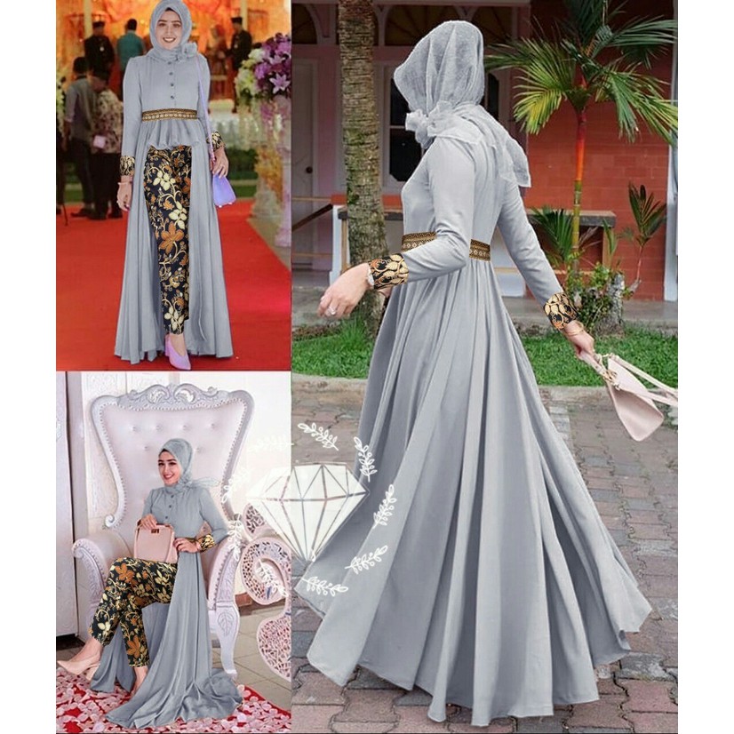 BAJU GAMIS WANITA TERBARU MAFAZA BATIK ABU STELAN WANITA BAJU MUSLIM