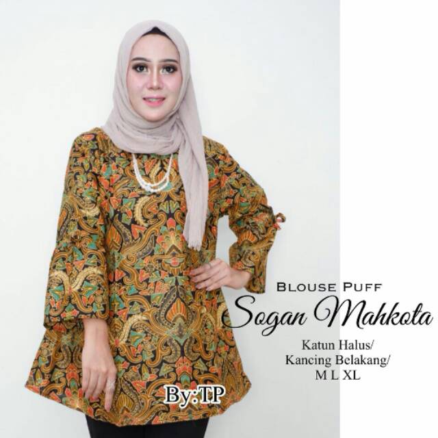 Name: Blouse Puff Sogan Mahkota Batik Atasan Baju Batik Wanita Ethnic Vintage Motif Sogan Classic