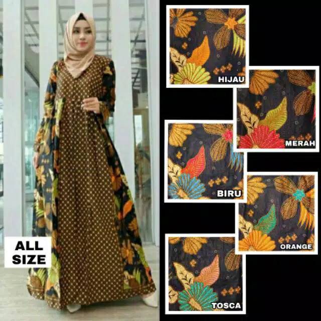 Name: Couple Gamis Batika Kembang Wulu Sogan Batik Sarimbit Long Dress Pesta Muslim