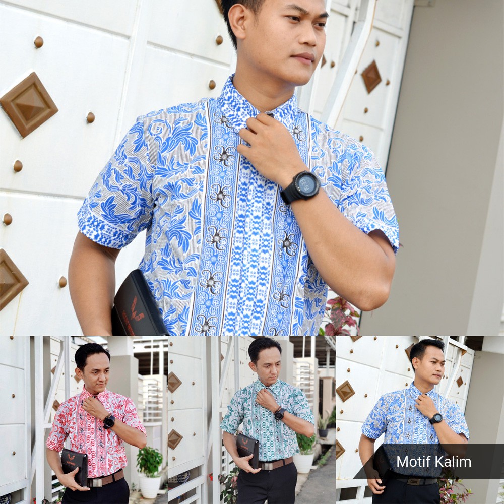 Jual Murah Pakaian di Kota Gunungsitoli Trolistore Kemeja Batik Pria Motif Kalim Lengan Pendek Warna Merah Biru Hijau Seragam Batik dari Tidak Ada Merek Kota Pekalongan