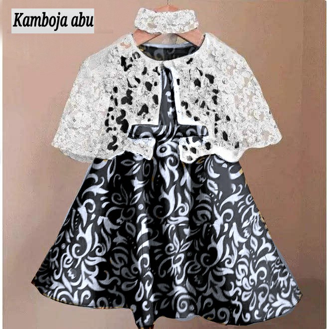 Dress anak bahan twiscon kombinasi brokat applikasi sleting belakang