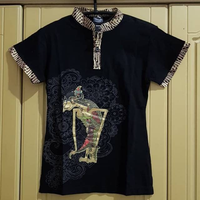 Kaos wanita list batik dgn sablon wayang, unik dan trendy. Ukuran M.