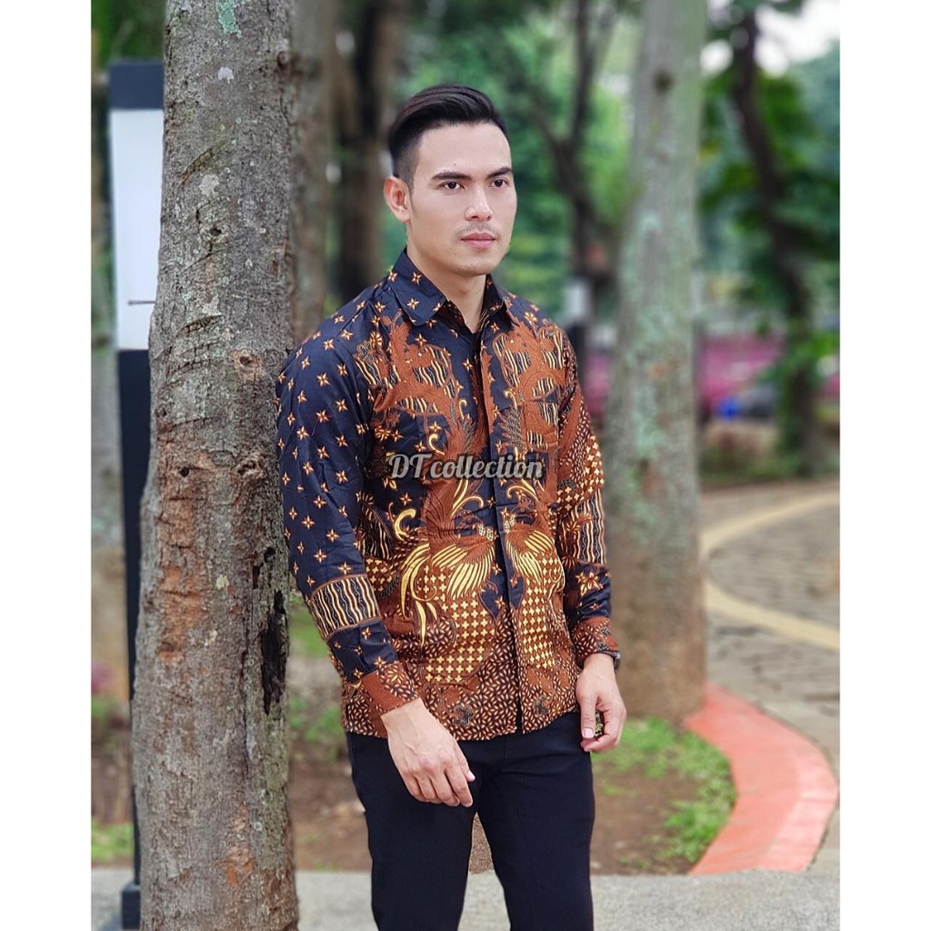 Agen Pakaian di Kabupaten Pesisir Barat Cod - Dt Collection Kemeja Batik Pekalongan Pria Cowok Lengan Panjang Motif Poenix Hitam dari Tidak Ada Merek Kota Surabaya